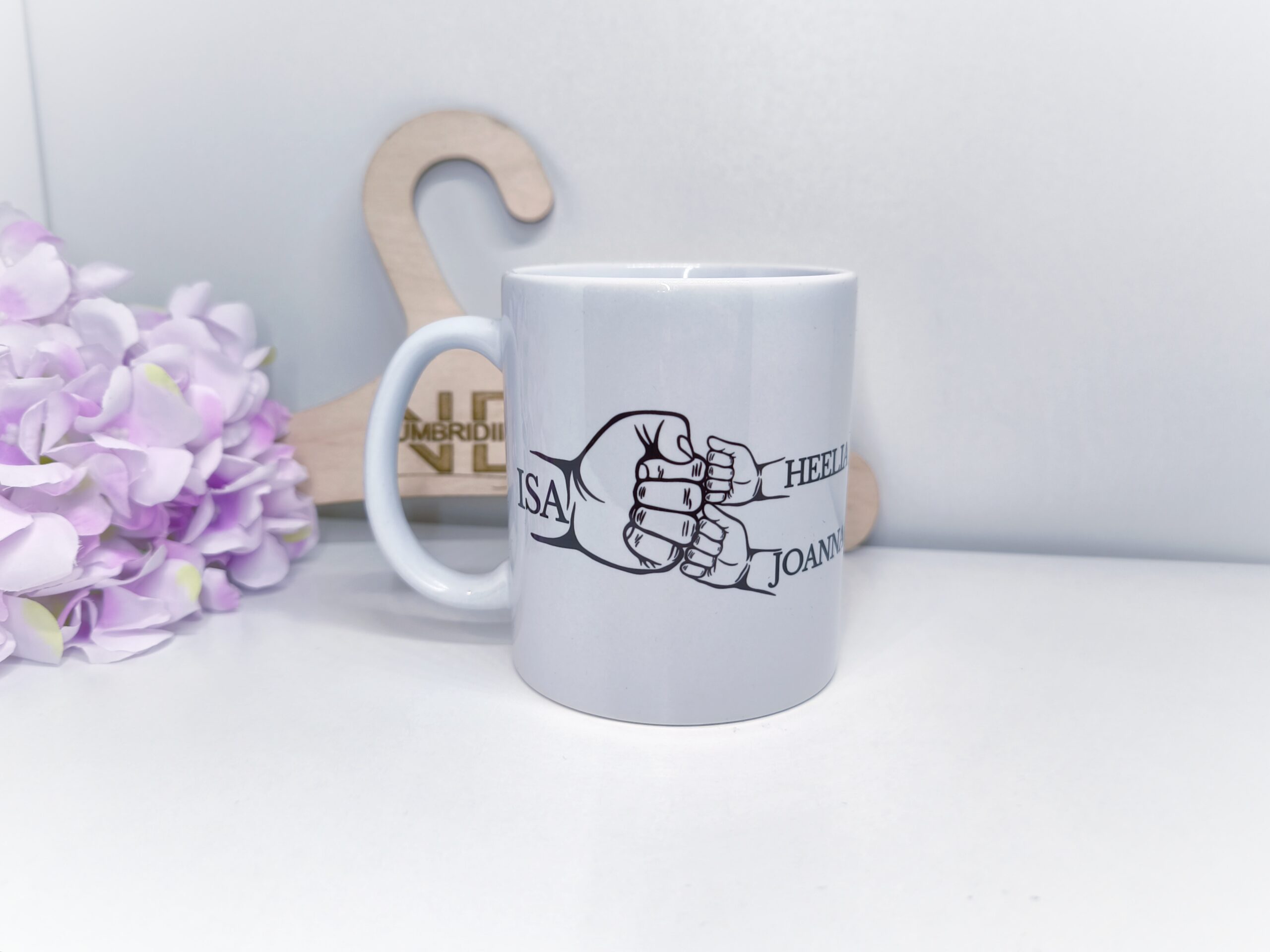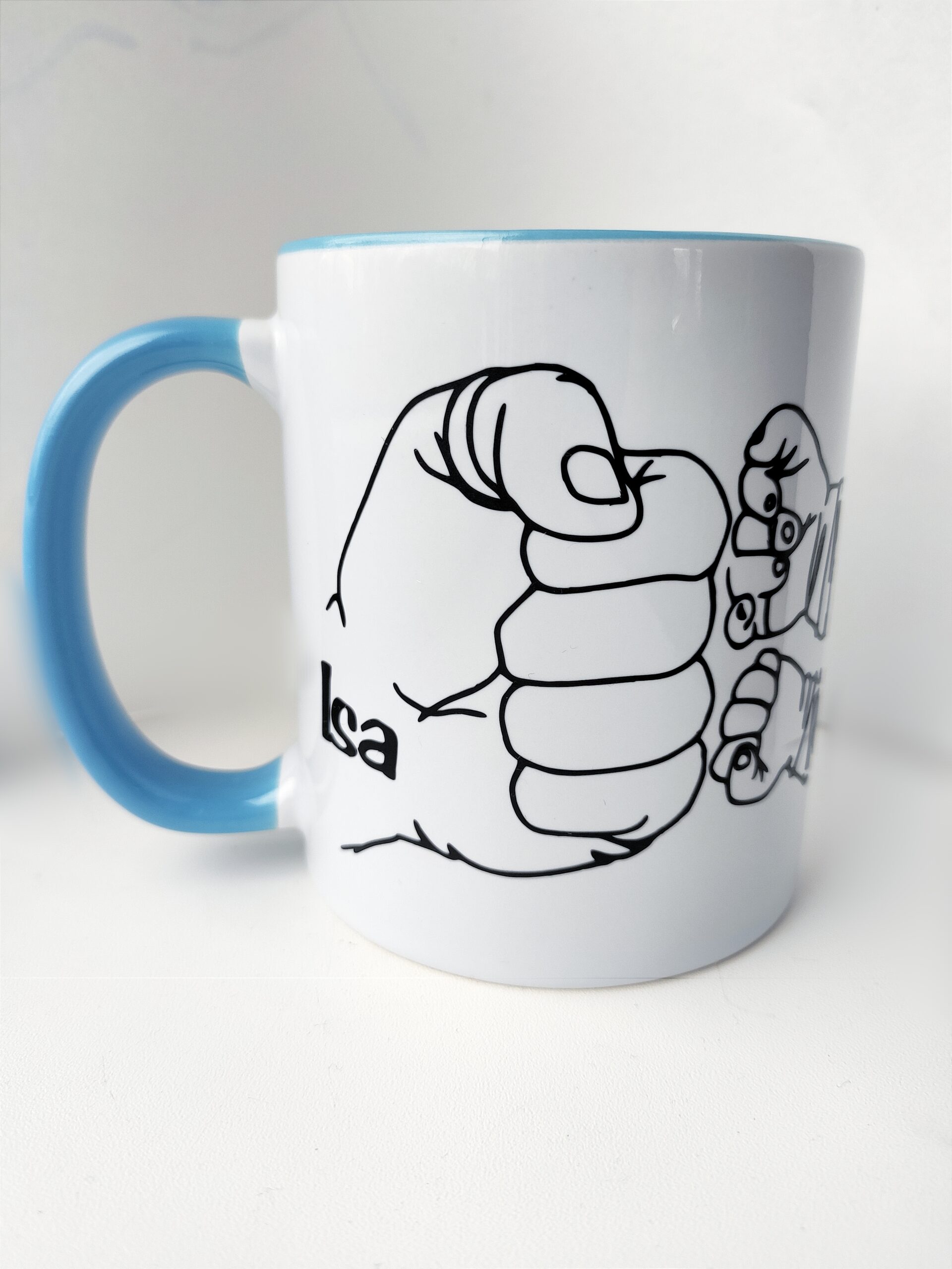 Kruusile on kantud üks suurem rusikas käsi ning lisatud Teile sobival arvul väiksemaid käsi.