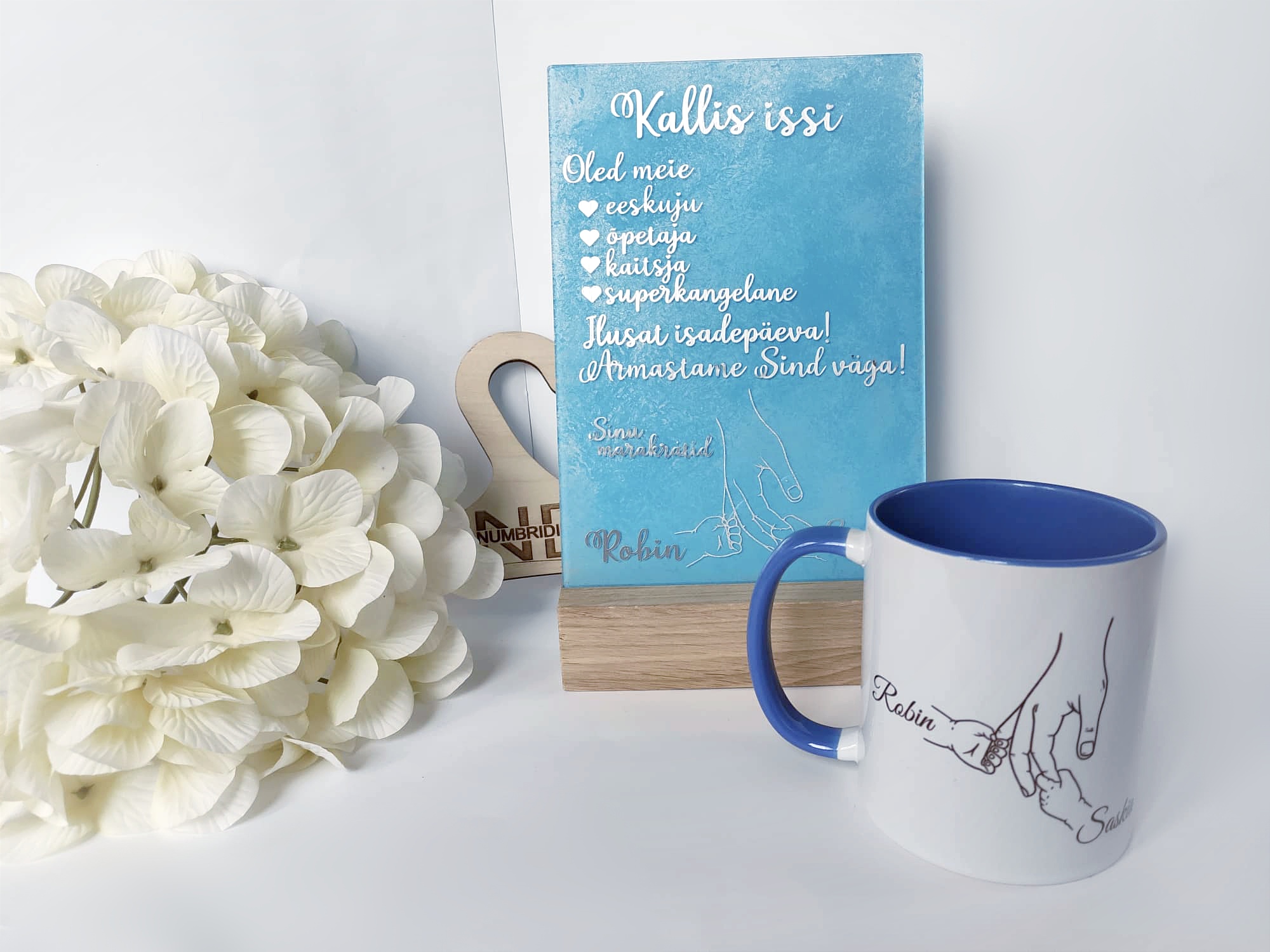 Suuremale käele lisan tiitli, nime või muu meelepärase sõna. Väiksematele kätele lisan laste kas nimed, sünni aastad või muu Teile meelepärase sõna.
