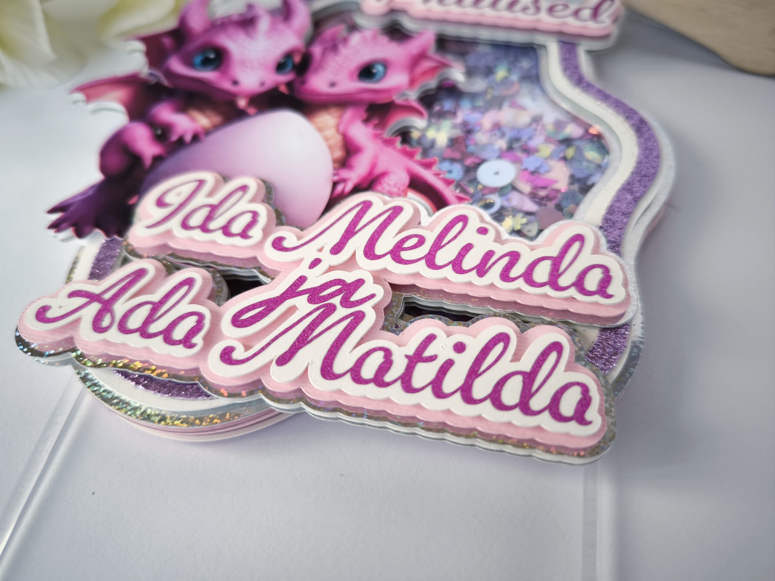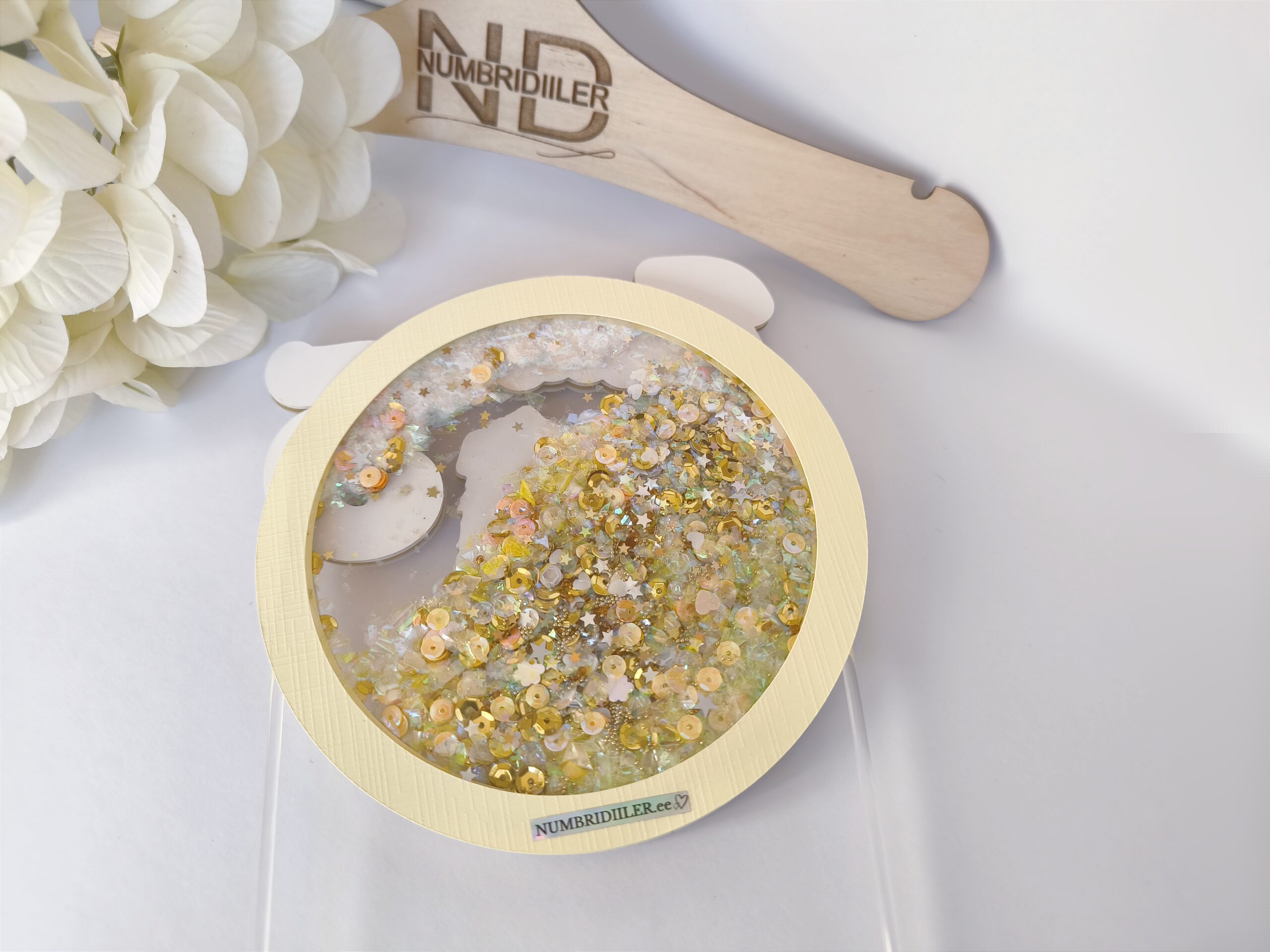 - kihtide vahele on lisatud litreid, pärleid, glitterit (topperit raputades liiguvad ning teevad sahisevat häält);