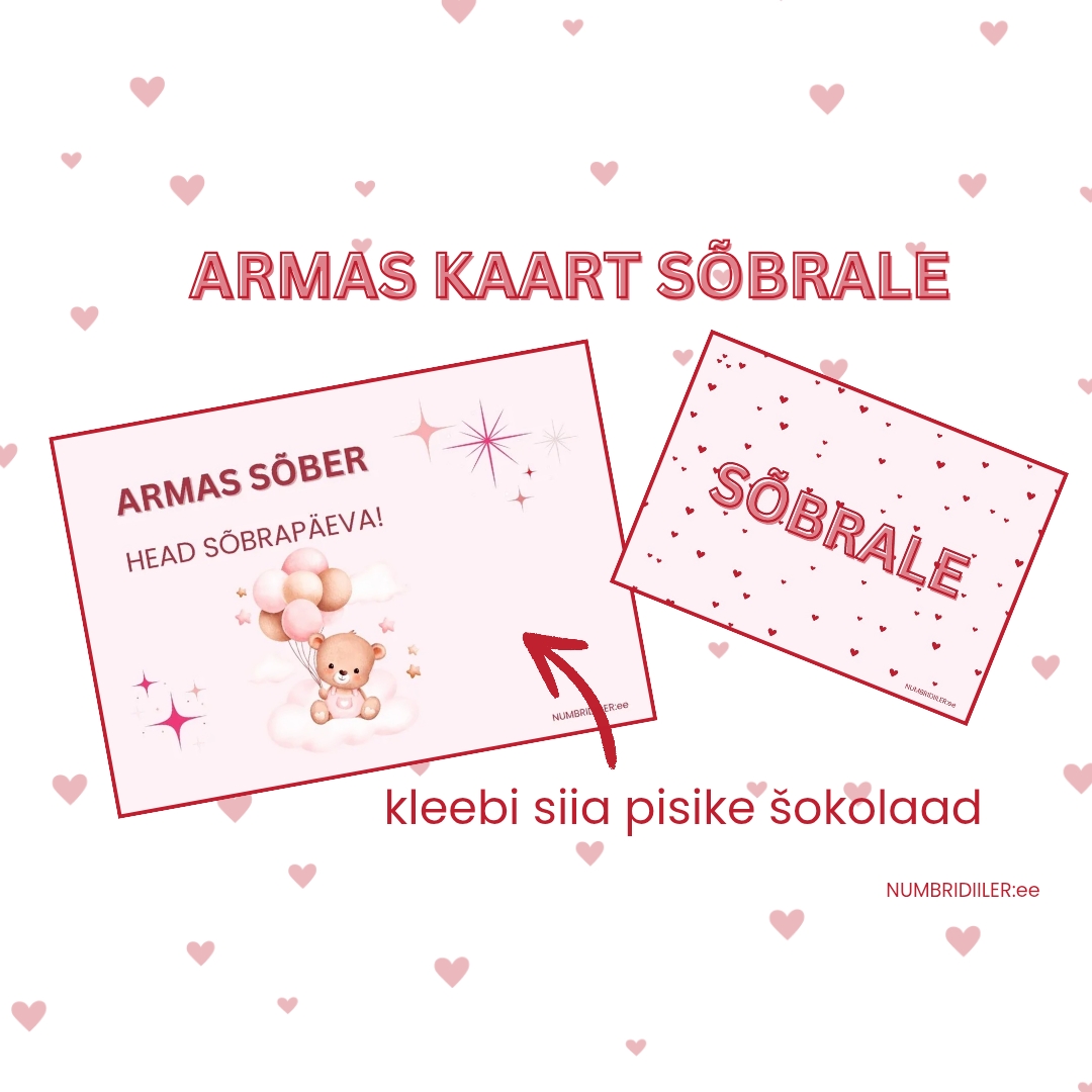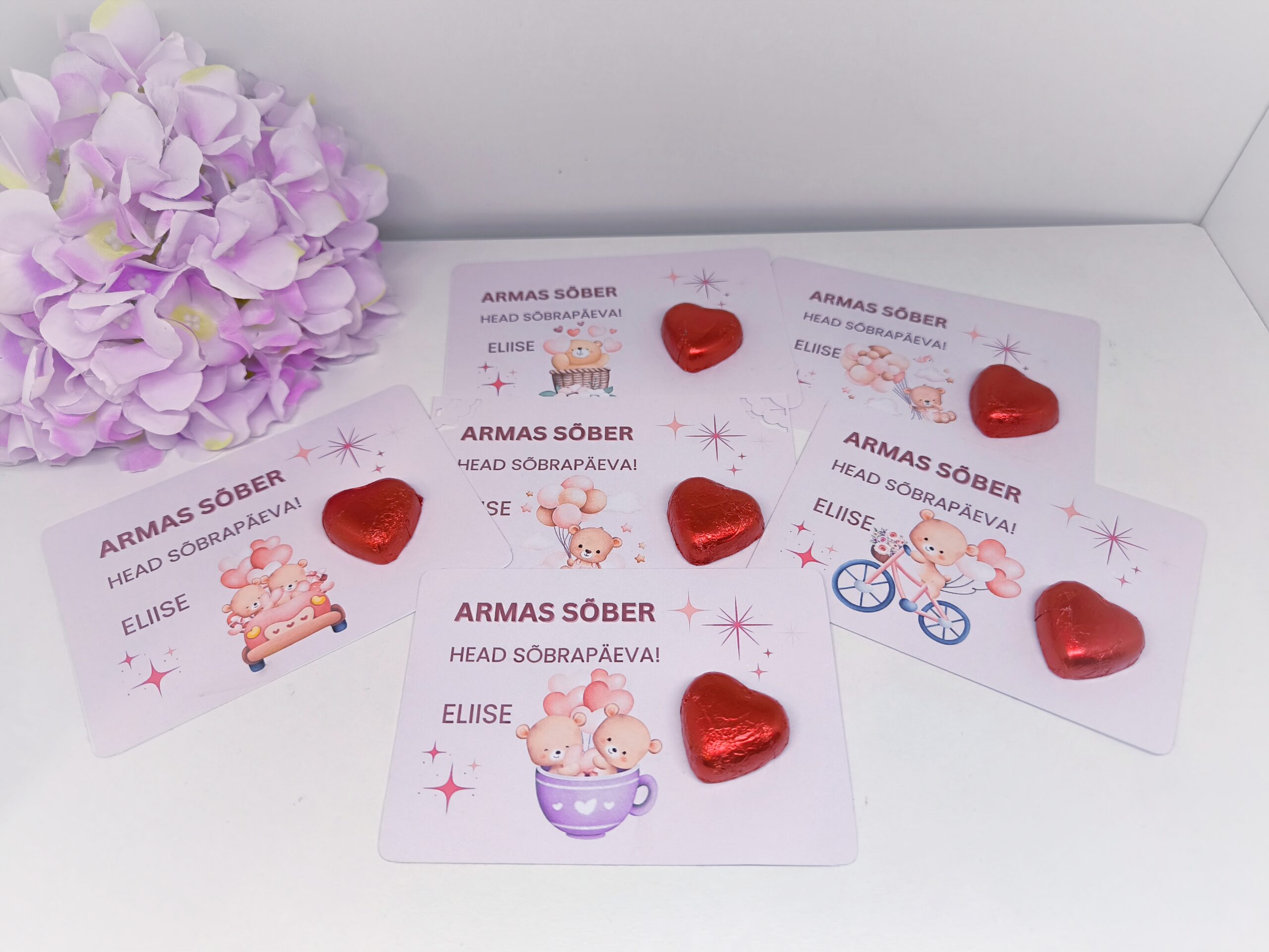 Lihtne ja armas sõbrapäevakaart lööb särama, kui kleebid sellele veel ka pisikese sõbrapäeva šokolaadi.
