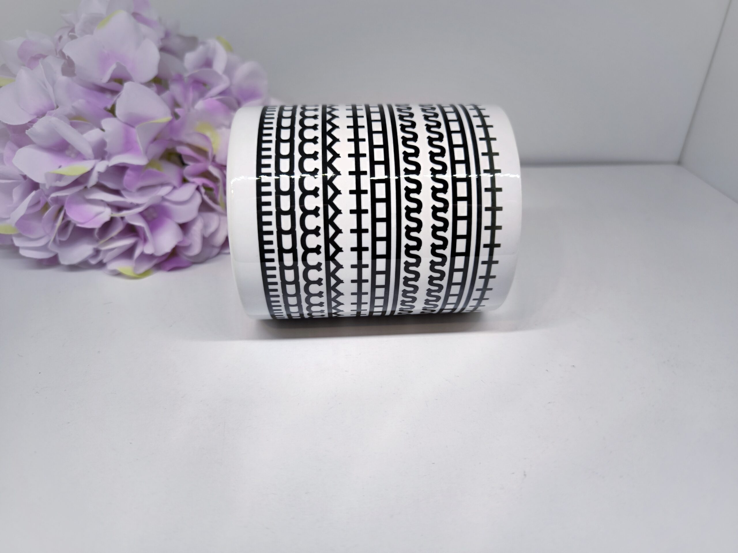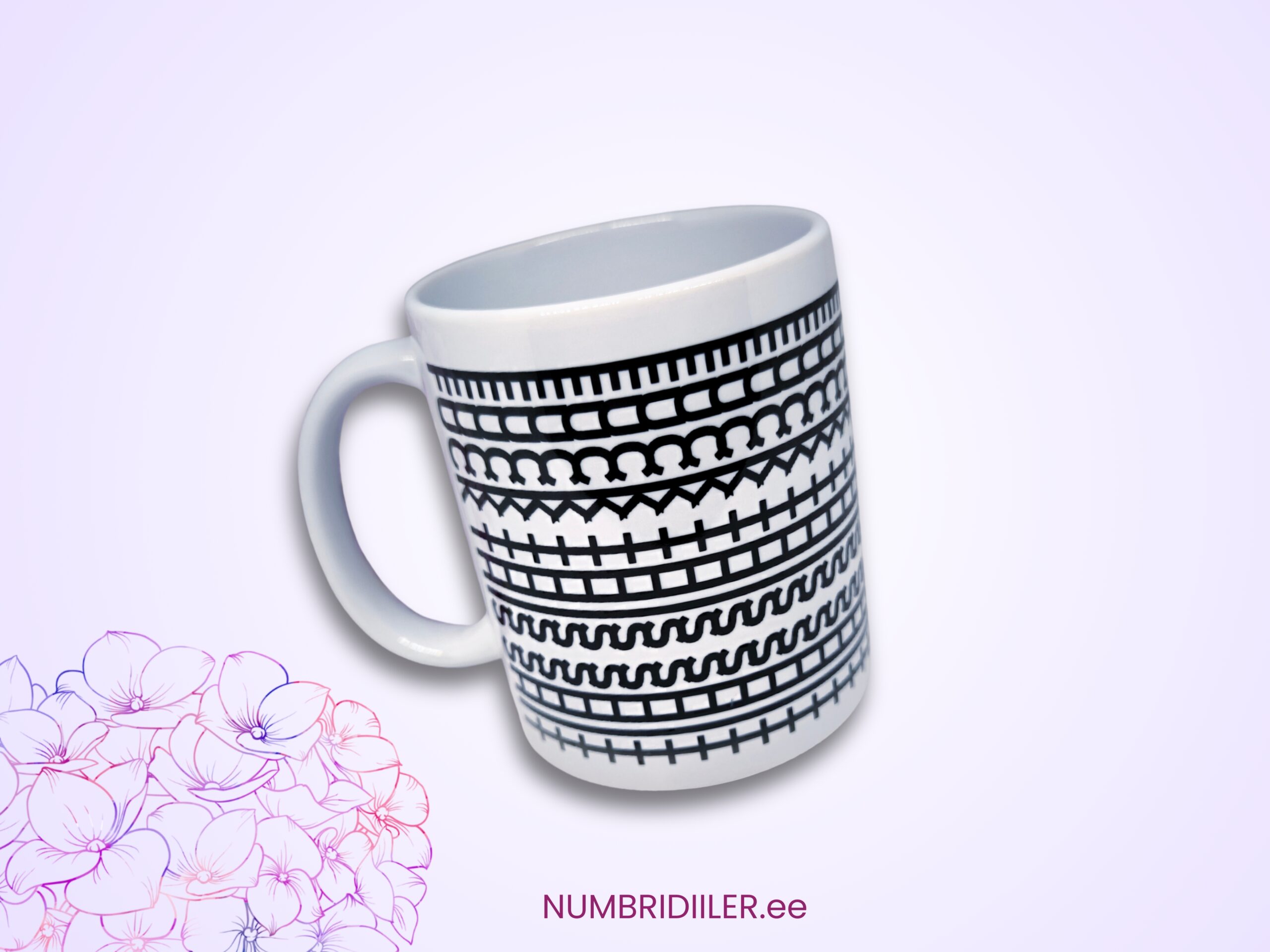 Populaarsust koguv disain! Õiges ehk joomise asendis olles on tassil omapärane muster. Keerates tassi külili ilmneb, et muster on tegelikult sõna või mõni lõhem fraas.